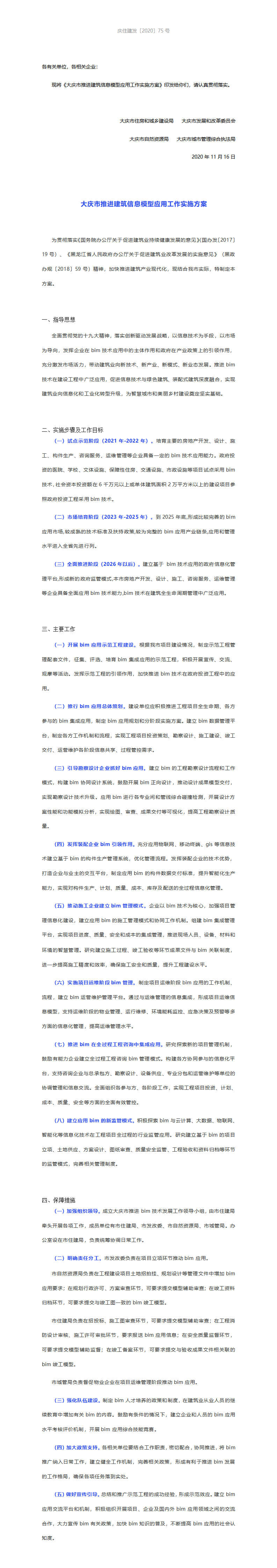 《大庆市推进建筑信息模型应用工作实施方案》