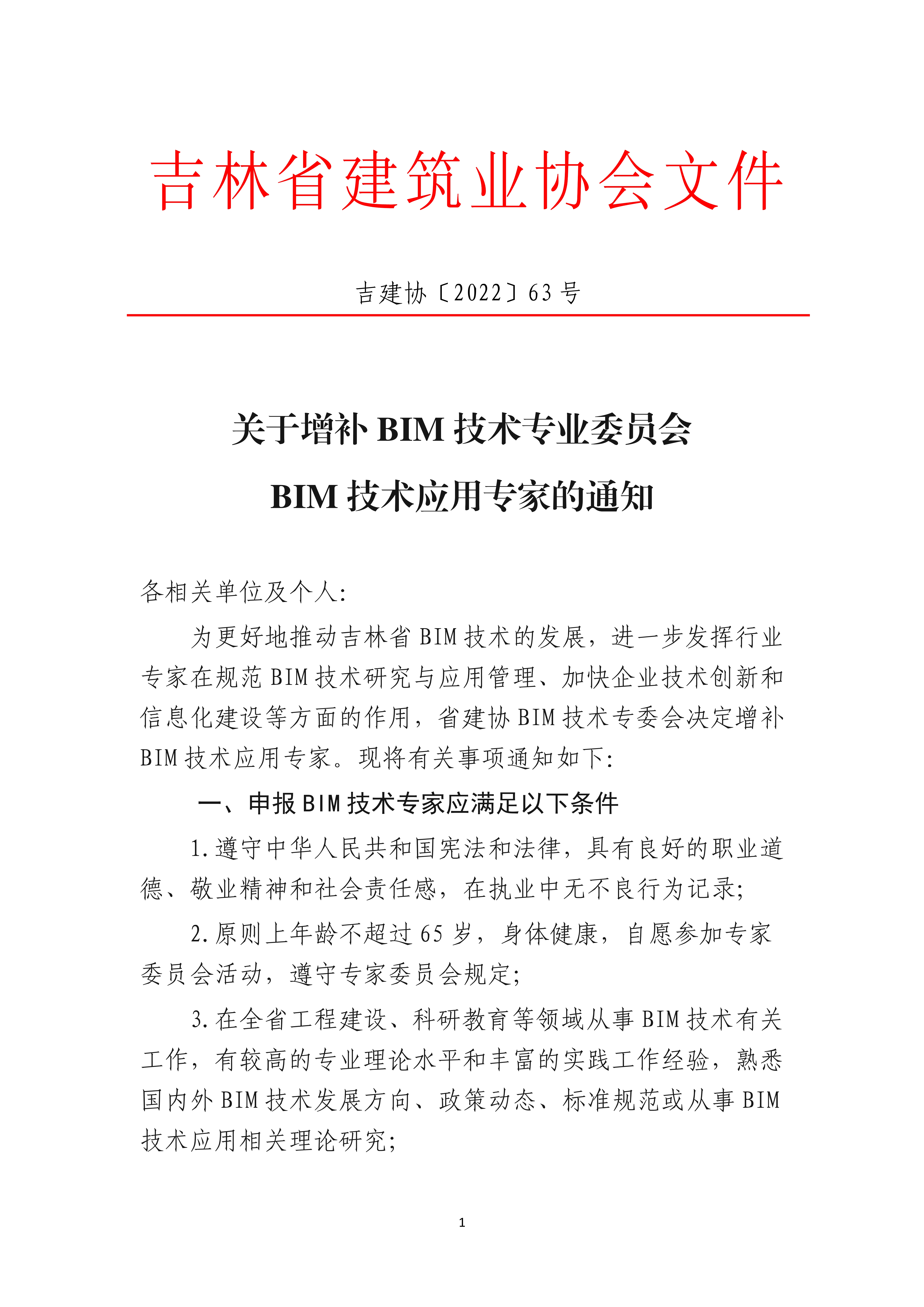 关于增补BIM技术专业委员会BIM技术应用专家的通知