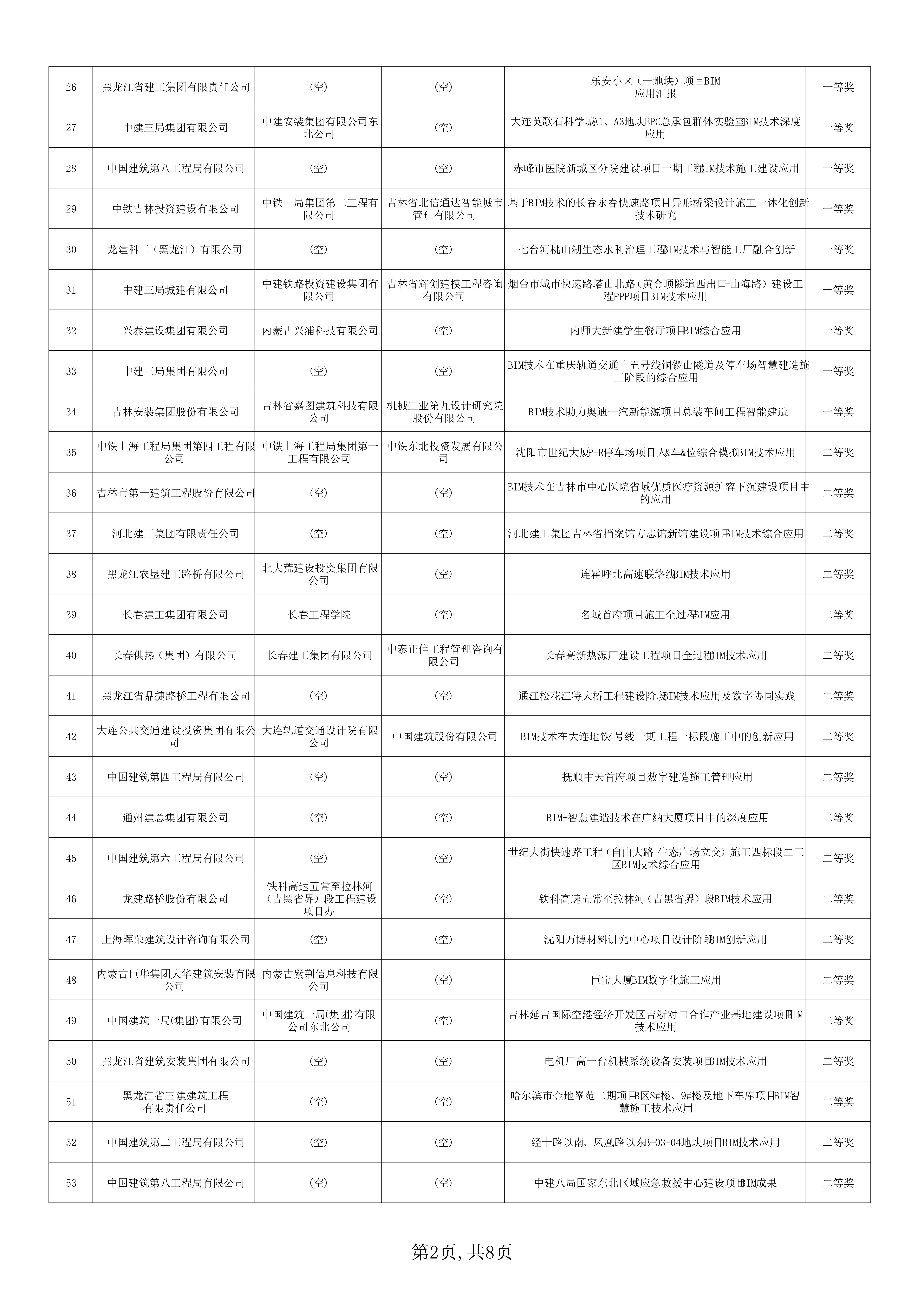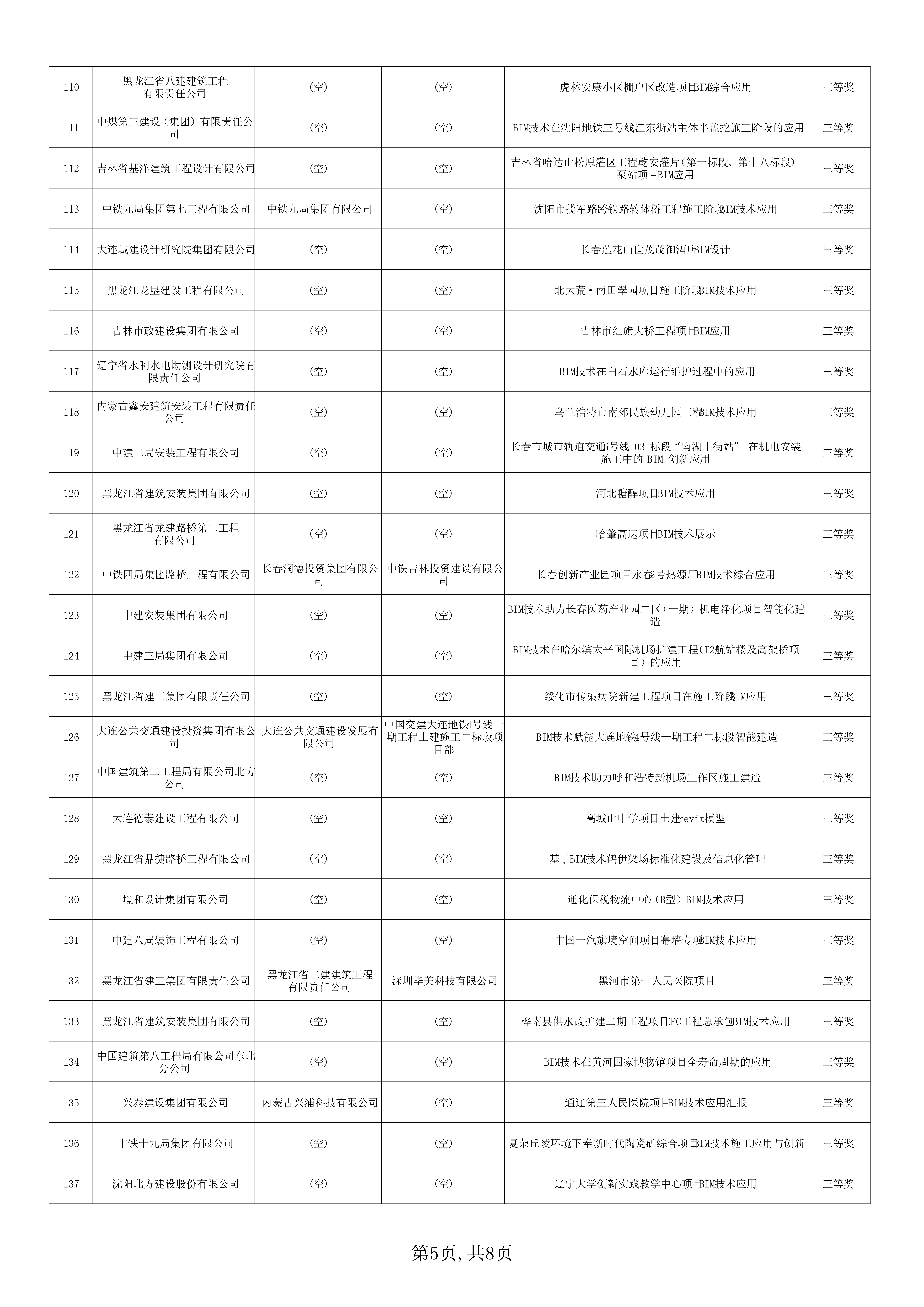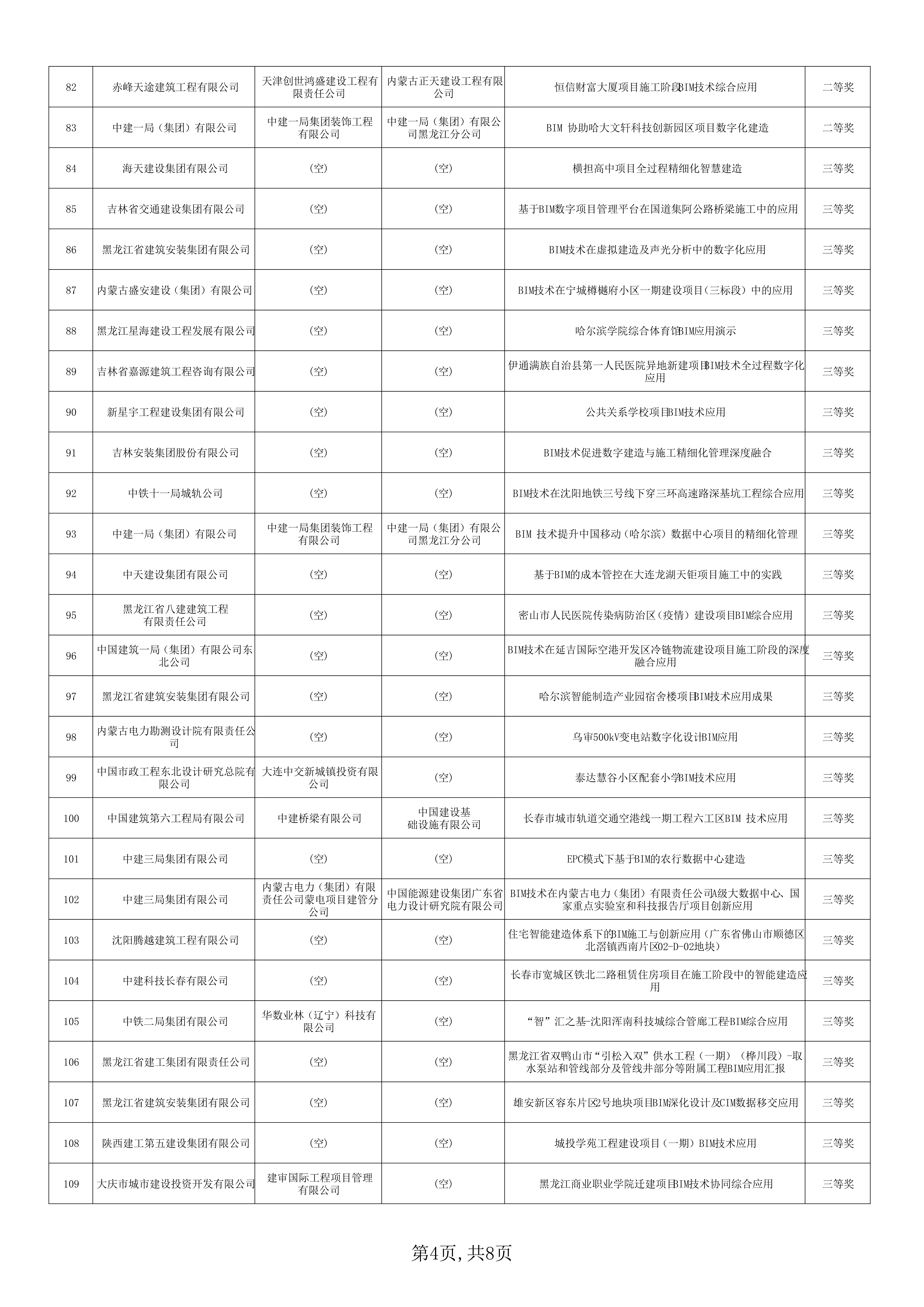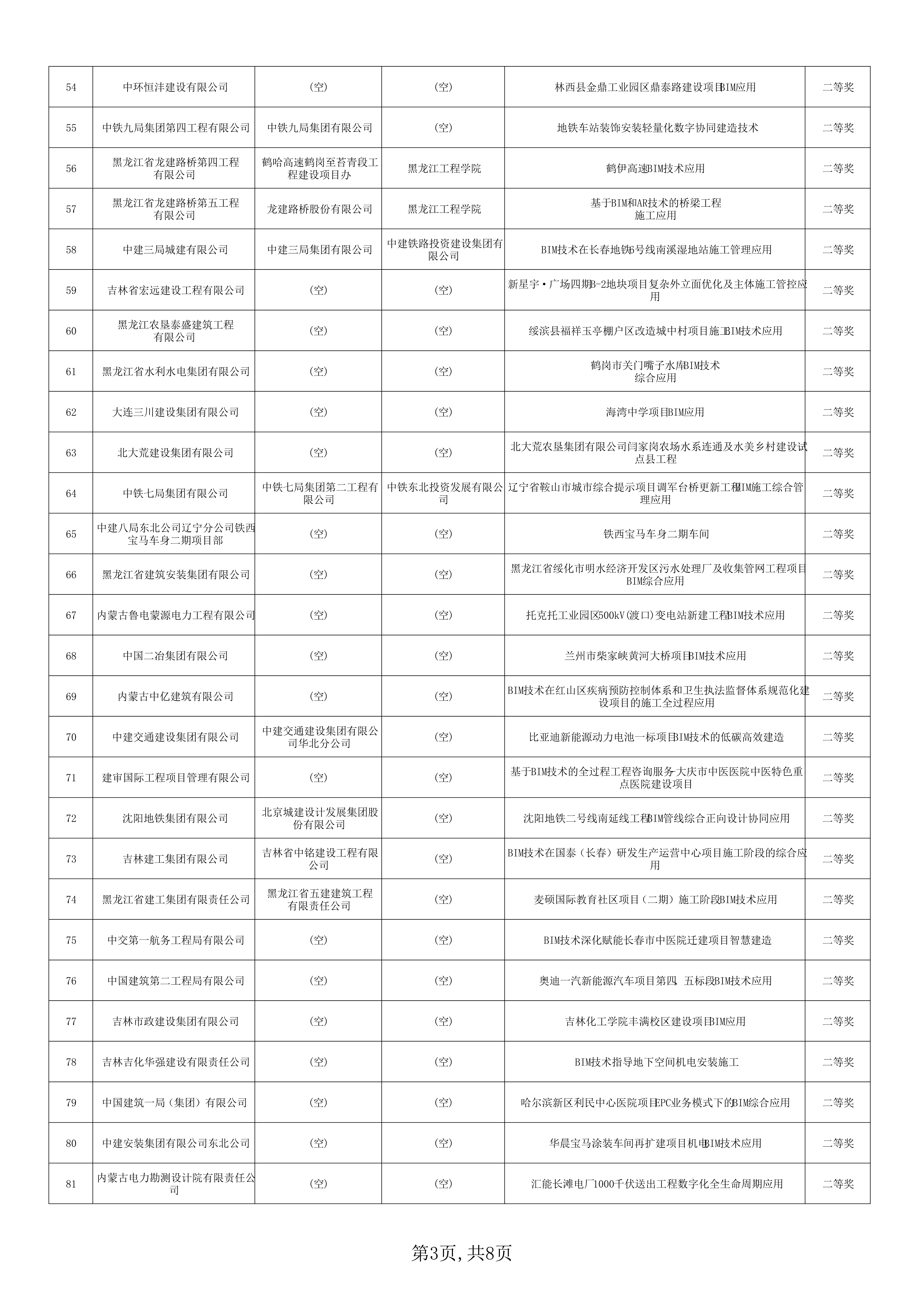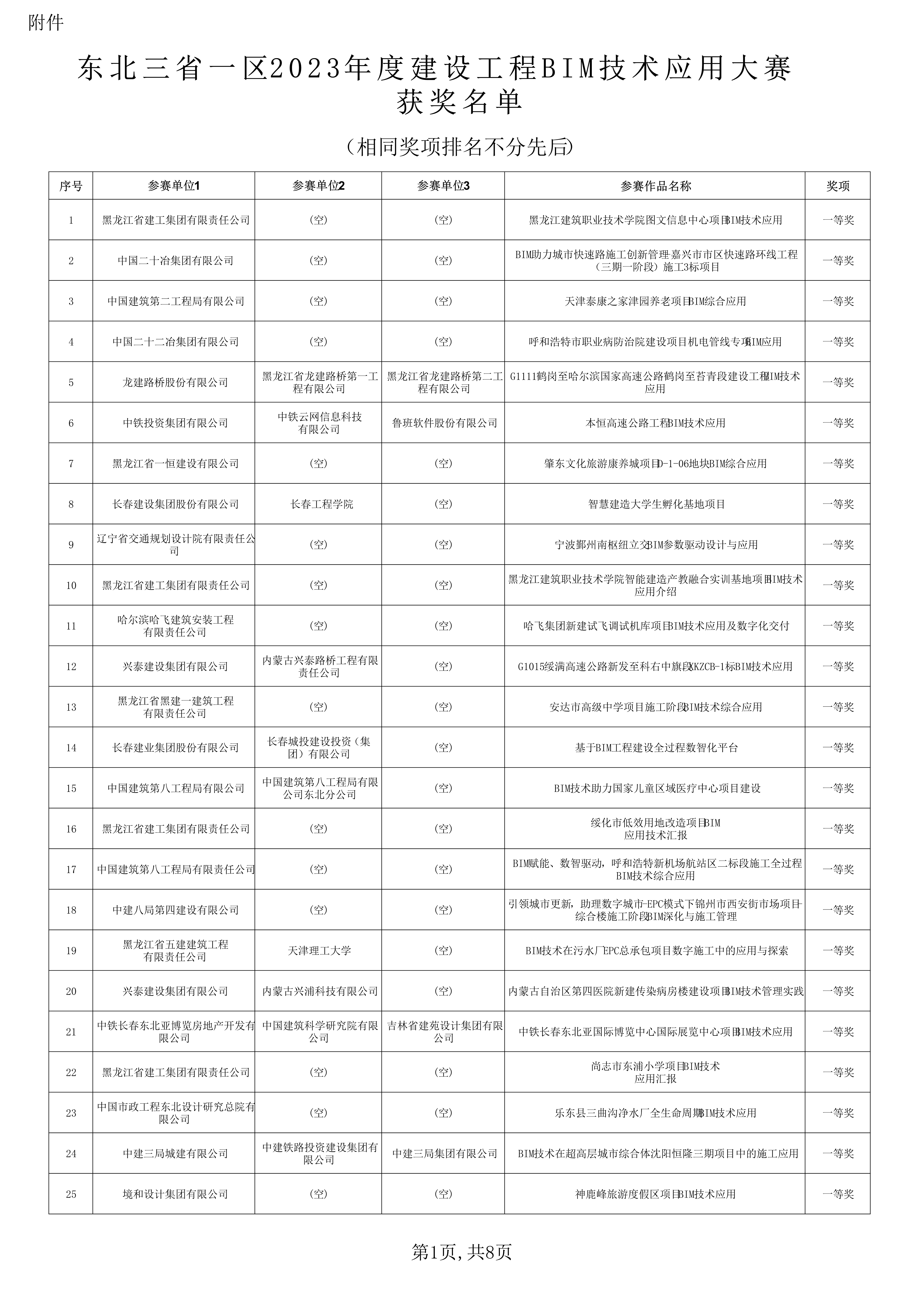 关于公布东北三省一区2023年建设工程BIM技术应用大赛获奖名单的通知