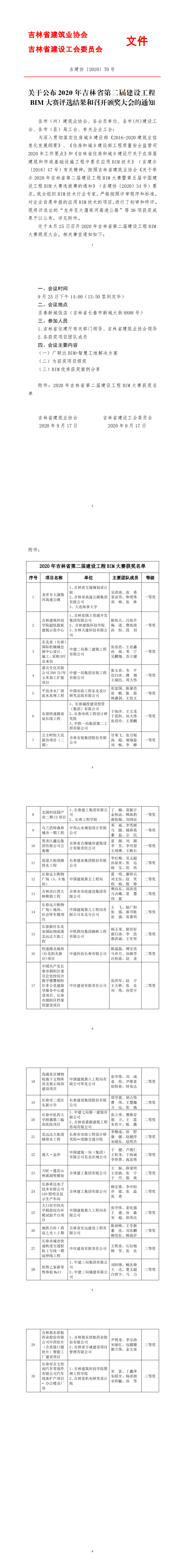 关于公布2020年吉林省第二届建设工程BIM大赛评选结果和召开颁奖大会的通知